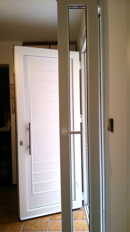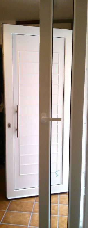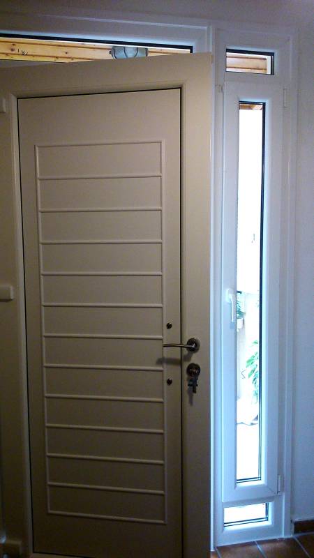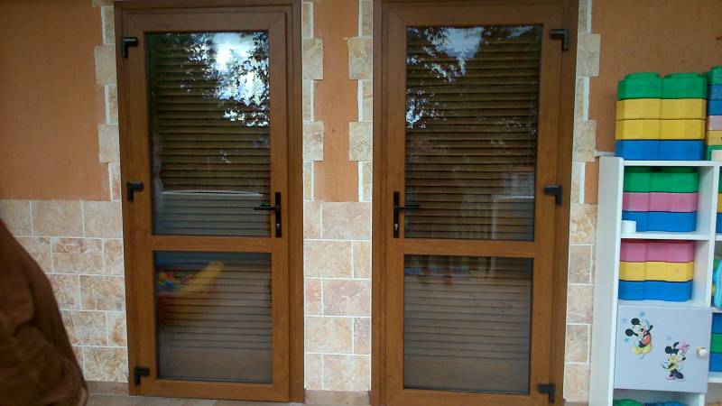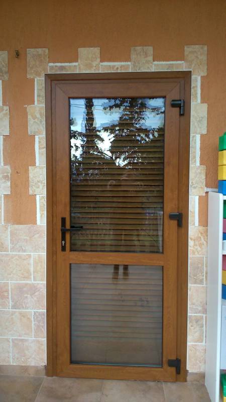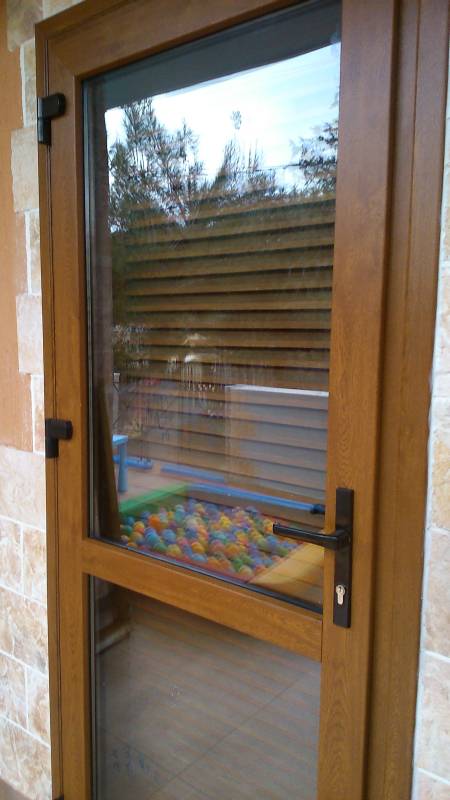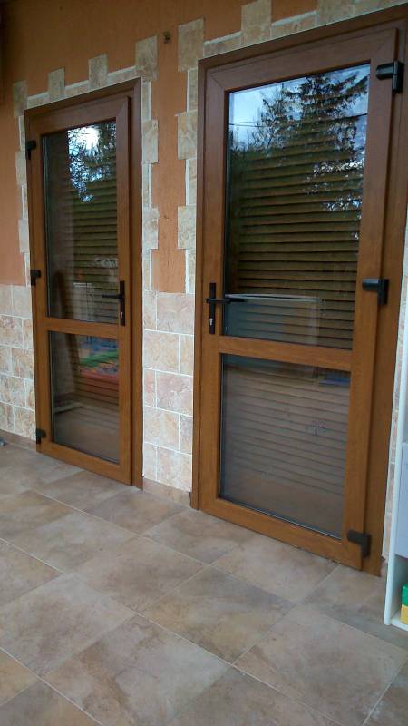 Επιλογές και σχέδια ανάλογα με τις ανάγκες και την αισθητική μας. Οι εικονιζόμενες βοηθητικές πόρτες ή κουζινόπορτες είναι P.V.C. Rehau σε χρώμα ξύλου golden oak έχουν τζάμια ενεργειακά με argon τεσσάρων εποχών τρίτης γενιάς Ug= 1,1 W/m2Κ για μέγιστη θερμομόνωση, τρίπλεξ για μεγαλύτερη ασφάλεια και ένα τάφ οριζόντιο λίγο πιο κάτω από το κέντρο, ανοίγουν προς τα έξω ώστε να μην δεσμεύουν τον εσωτερικό μας χώρο.